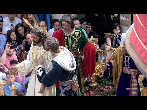 Nuestro Padre Jesús de la Redención en el Beso de Judas de la Iglesia de Santiago el Mayor. Hermandad del Rocío. Semana Santa de Sevilla de 2019.